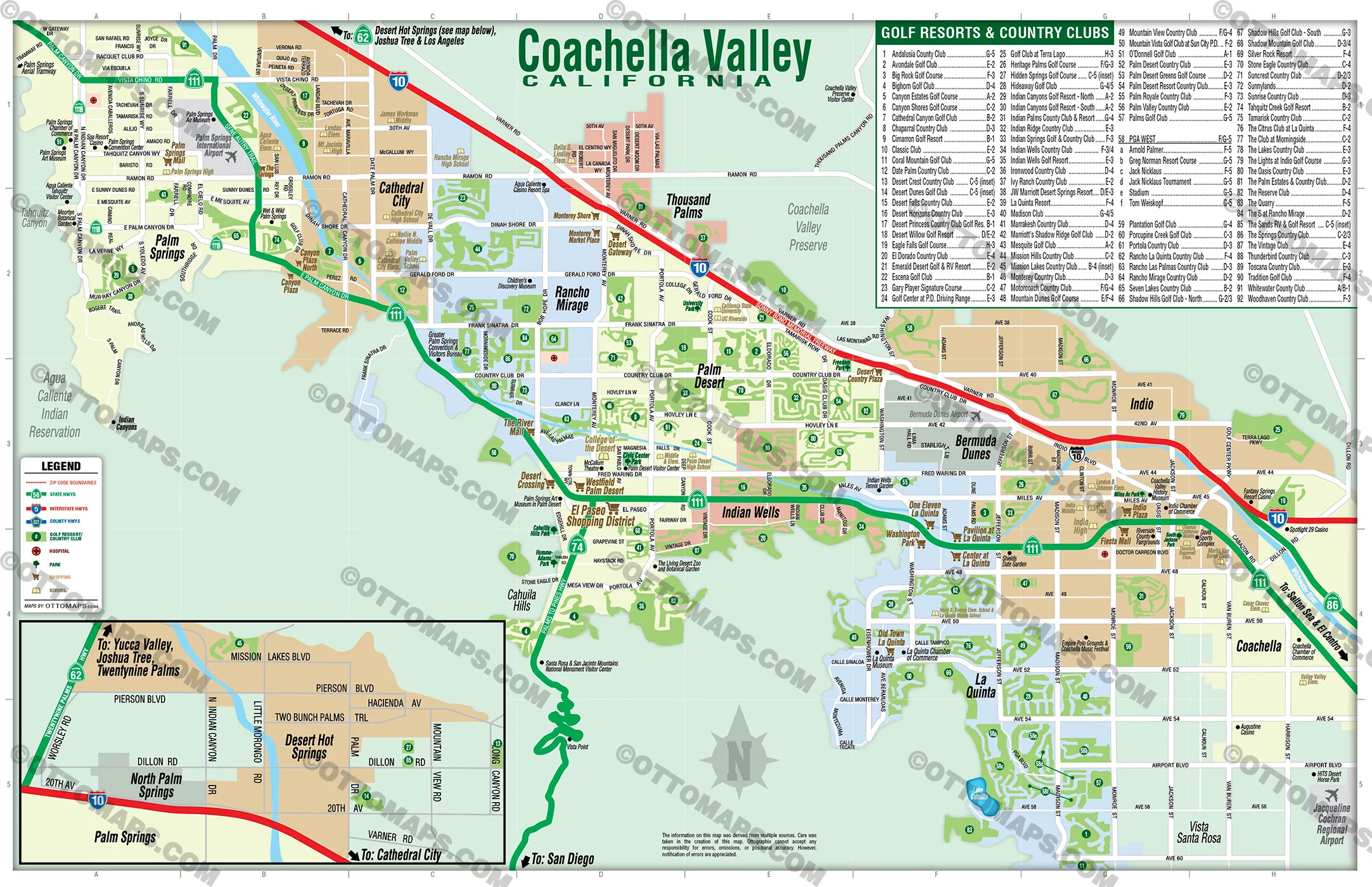 Coachella Valley Map with Golf Index - FILES - PDF and AI Files, editable, vector, royalty free