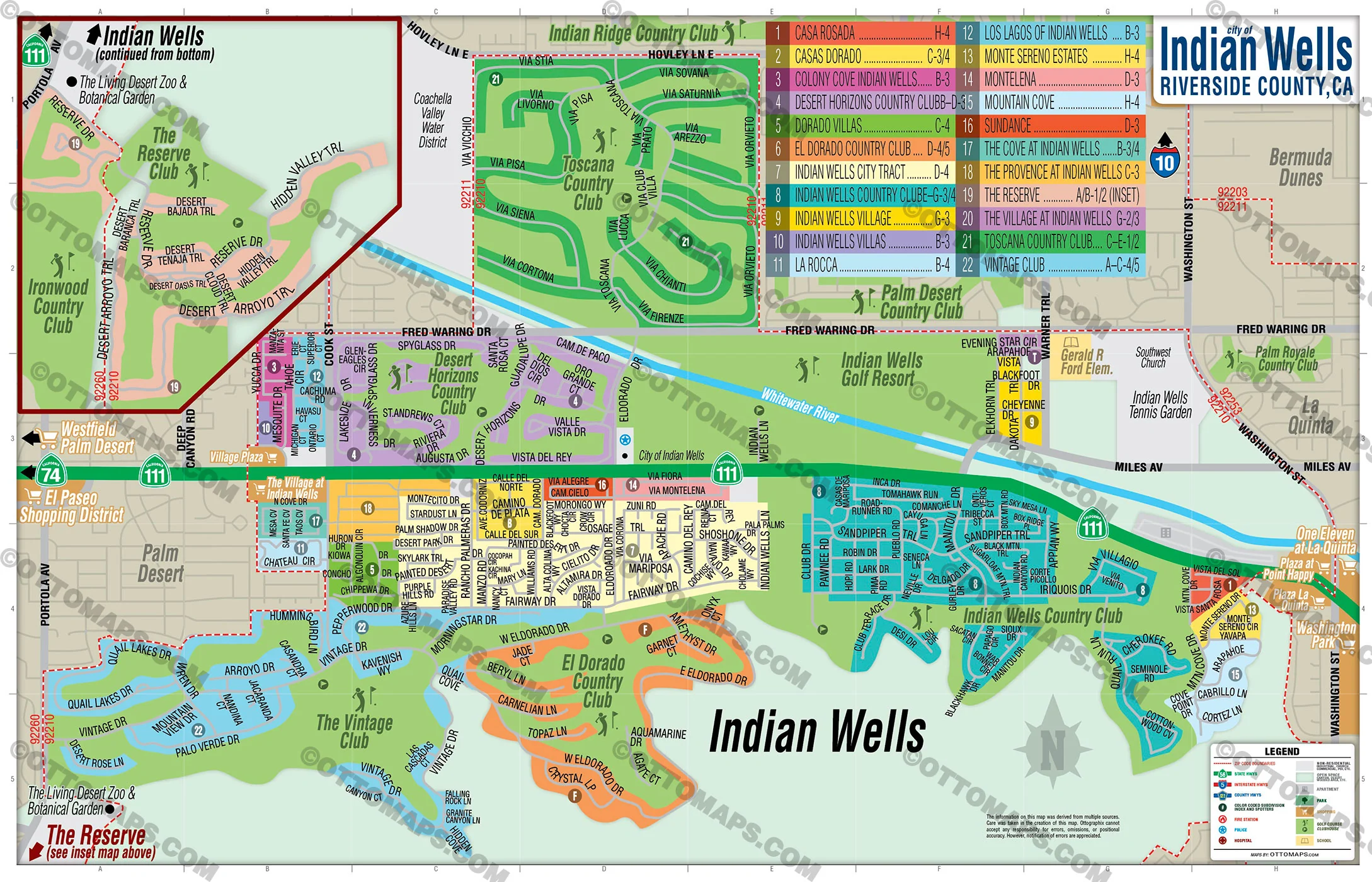Indian Wells Map, Riverside County, CA - FILES - PDF and AI, editable, vector, royalty free
