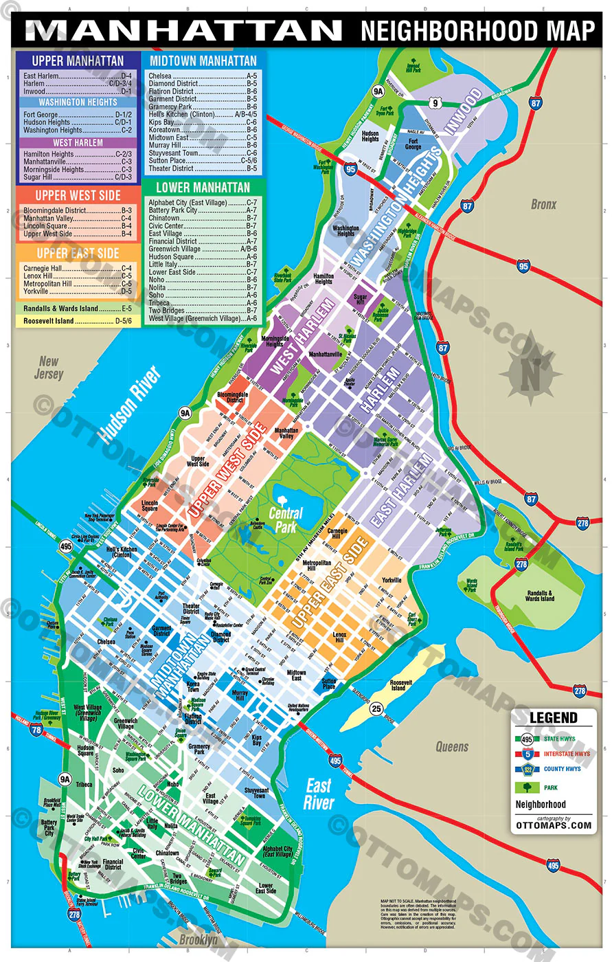 MANHATTAN NEIGHBORHOOD MAP POSTER PRINT